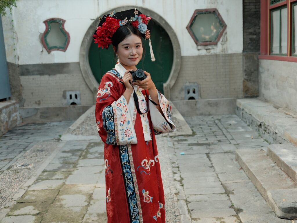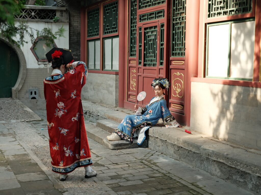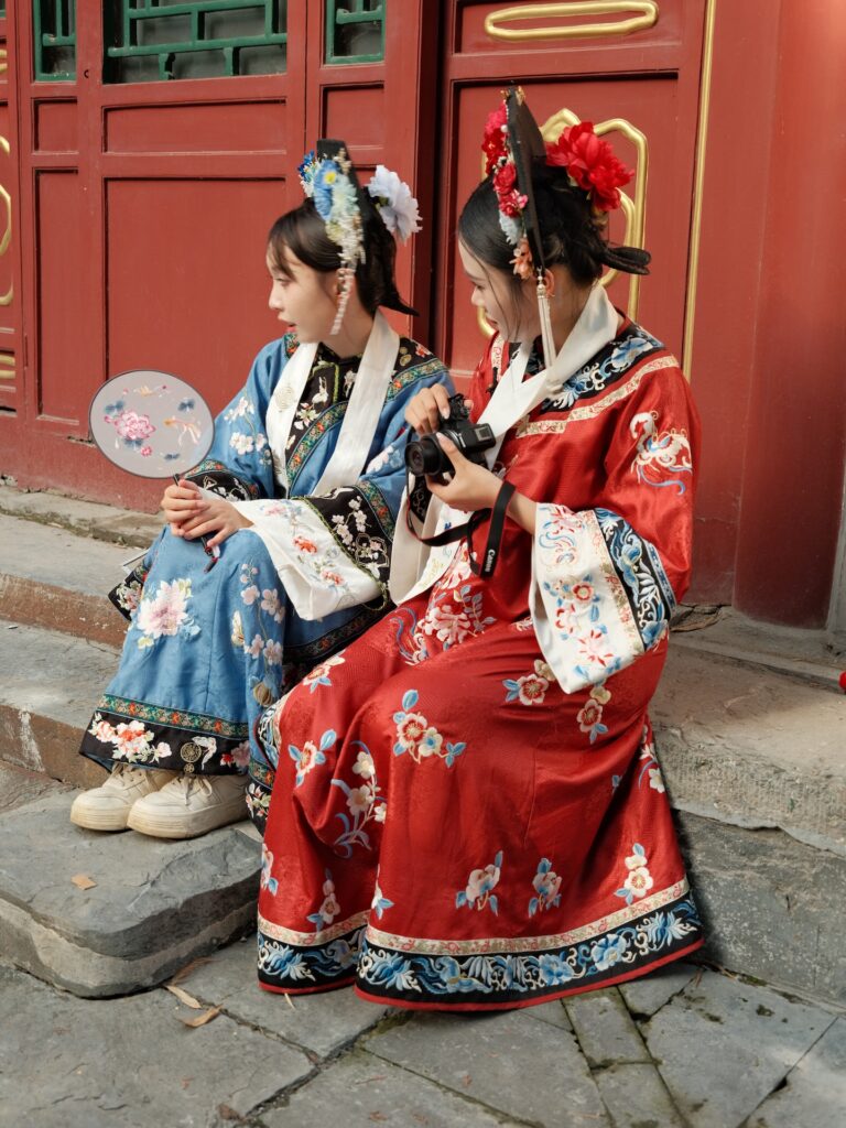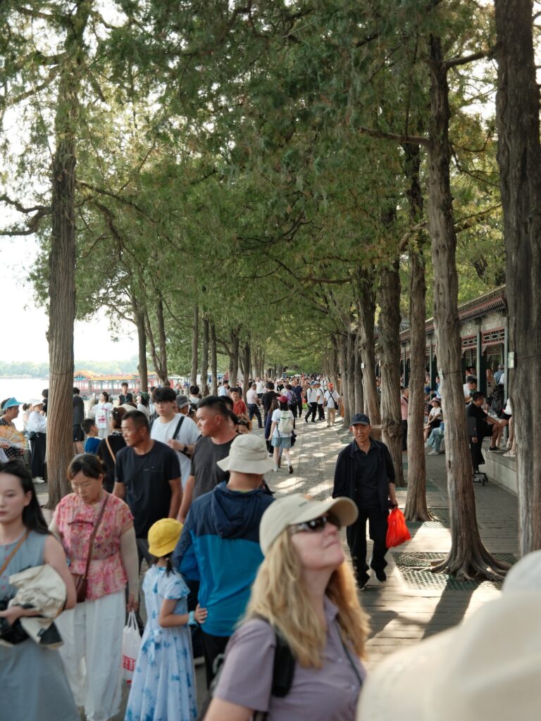 Der Laubengang entlang des Kunming Sees ist voller Menschen. Und viele nutzen es für Fotoshoots. Das könnte mir auch Spaß machen.