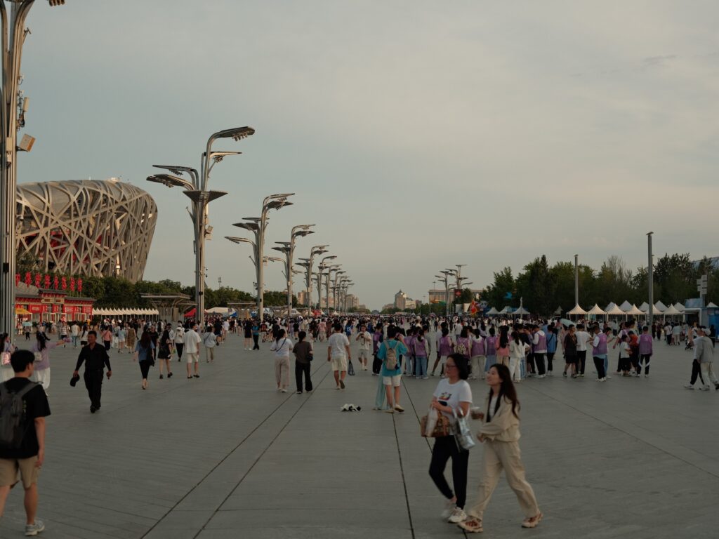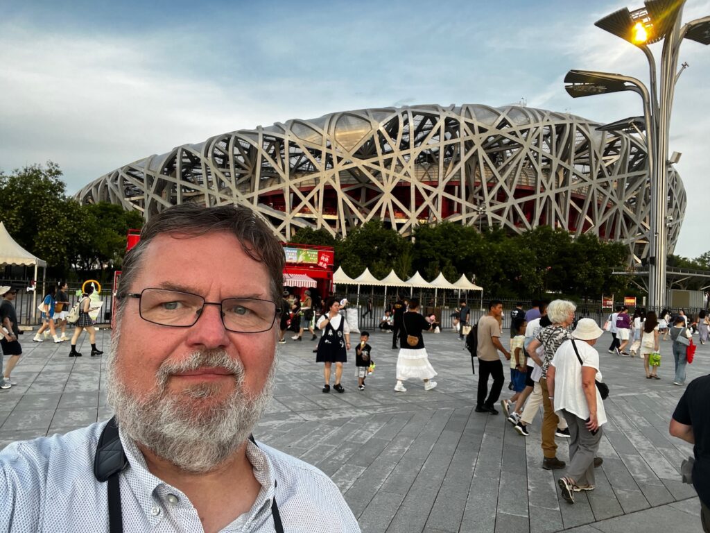 Und dann sind wir mit dem Bus unterwegs zum Vogelnest. Dem Olympiastadion von 2008. Der Verkehr ist sehr dicht aber der Busfahrer und der Reiseleiter sind unbeeindruckt. Wir steigen aus und los gehts.