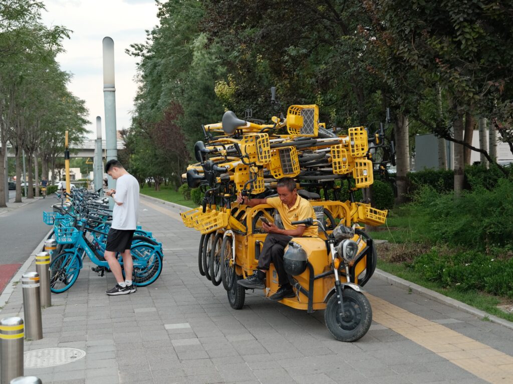 “there are nine million bicycles in Beijing” und irgendwer muss die schließlich einsammeln. Und dann ein sehr hübsches E-Auto von Xiaomi. Die können nicht nur Handys bauen.