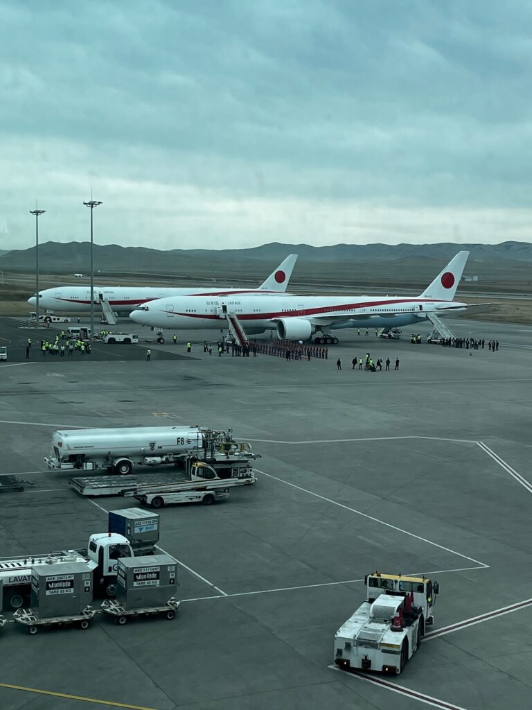 Während wir so warten fallen uns zwei japanische Maschinen auf. In den letzten Tagen war der Japanische Kaiser zu besuch und nun auf dem Rückweg. Selten genug, dass man die Ehrengarde so sieht. Die Duty Free shops mit Kaschmir Sachen sind deutlich teuerer als das was ich im Laden gezahlt hatte, also auch da alles richtig gemacht und dann geht es auch schon in den Flieger.