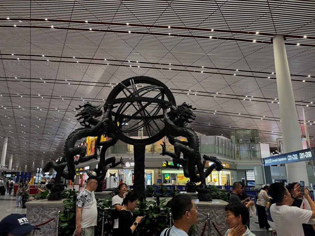 Da wir langen Aufenthalt in Peking haben werden und wir den Flughafen verlassen rätseln wir, ob wir unser Gepäck bis Frankfurt durchbuchen können, oder ob wir es in Peking holen müssen. Wenigstens das müssen wir nicht und unser Gepäck macht sich auf die lange Reise.