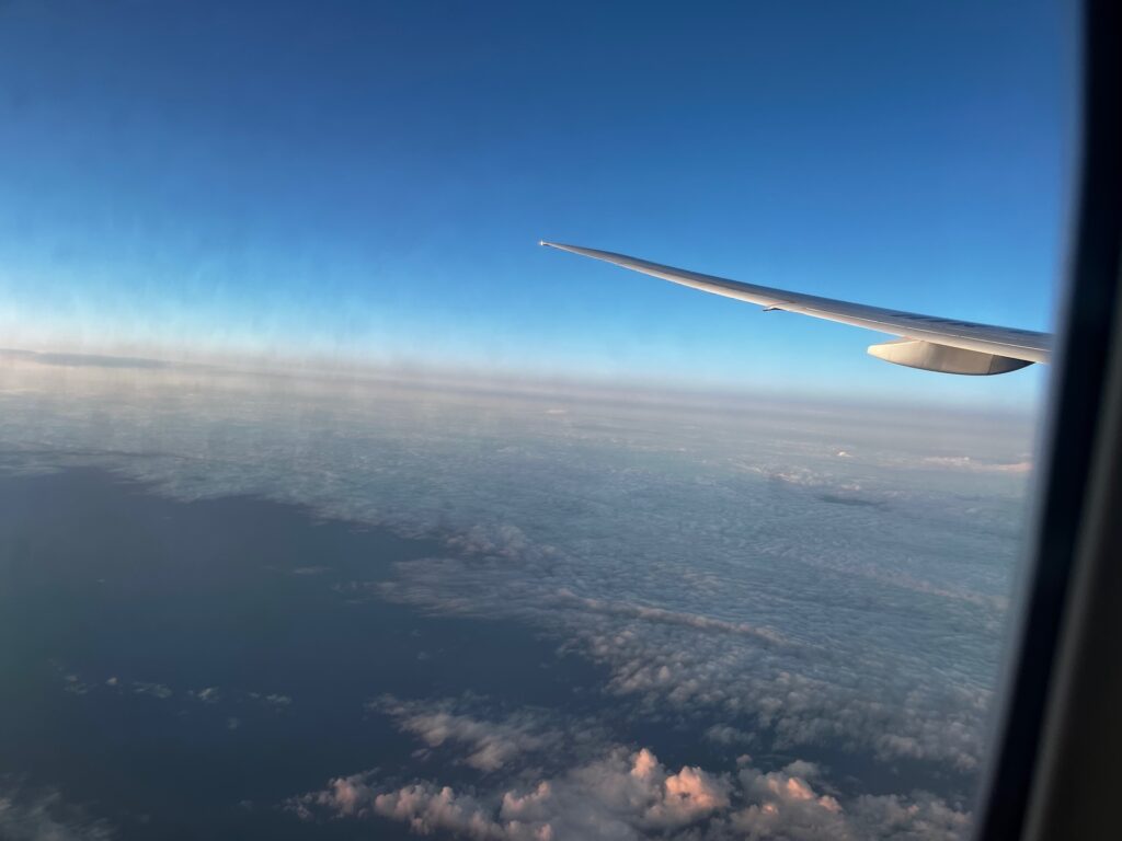 Beim Versuch ist es geblieben und ich schaue aus dem Fenster. Die Sonne geht auf, hinter uns aber die Erde unter uns erwacht allmählich.