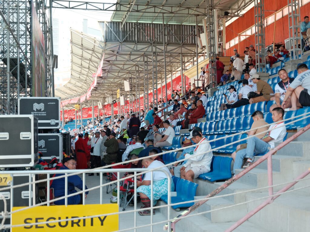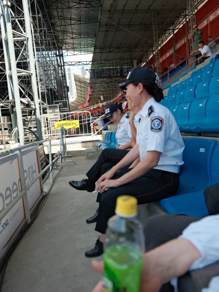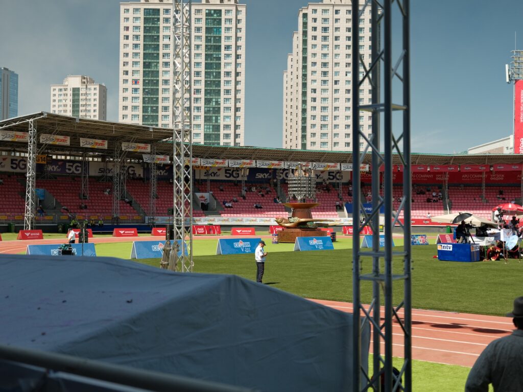 Eine beeindruckende Architektur und als wir ankommen sind viele Menschen unterwegs, denn im Stadion spielt eine Band. Boyband, Girlband, ich weiß es nicht aber das aufbrandende Ahhh und Ooohh ist bis draußen zu hören.
