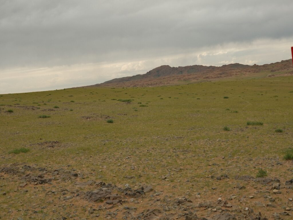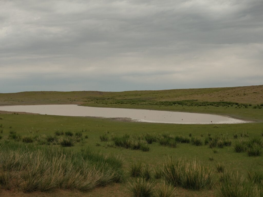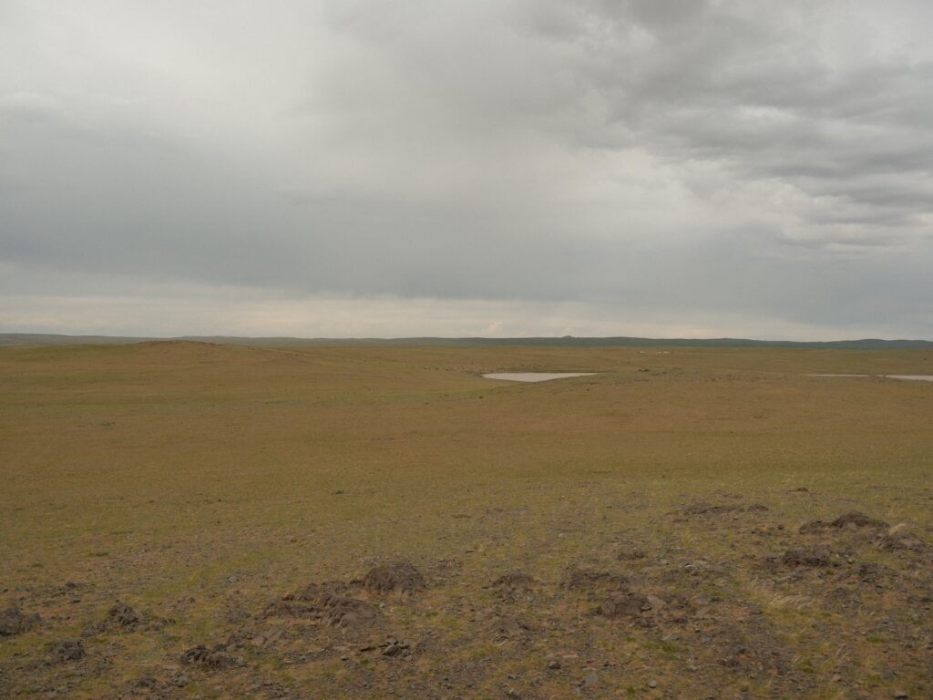 Wir verlassen Mandalgovi in Nordwestlicher Richtung und die Steppe wird hügelig und grün und es geht von Kuppe zu Senke und kleine Seen sind zu sehen und auch feuchte Stellen, die wir mit unserem Rotel umfahren.